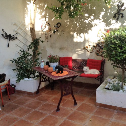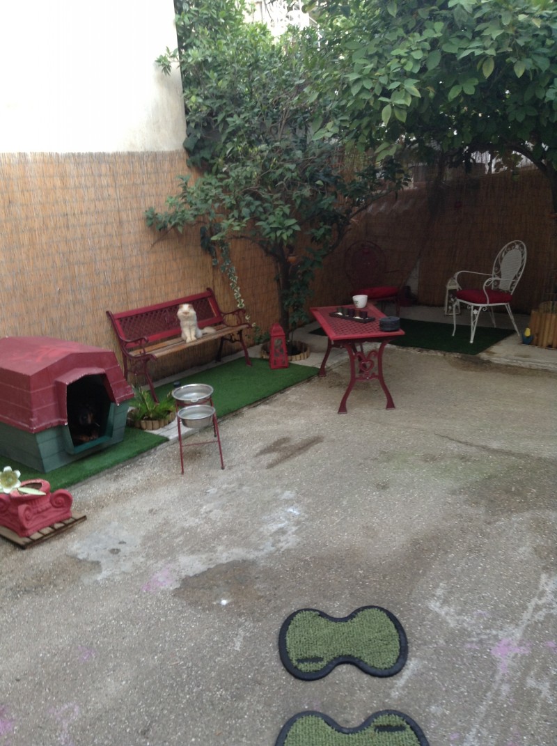 Η Αυλή του νέου μας κτιρίου δημιουργήθηκε για την χαλάρωση τόσο τη δική μας! όσο και των μικρών μας φίλων. Αυτός είναι ο εξωτερικός χώρος του νέου μας κτιρίου που αξιοποιήθηκε και έγινε μια μικρή "όαση". Σε αυτό το χώρο περπατούν τα νοσηλευόμενα ζώα, ξεκουραζόμαστε και ασχολούμαστε με τις δυό μεγάλες μας αγάπες ( ζώα και λουλούδια), αλλά είναι κυρίως το σπίτι του Πατρίποδου, του Καλαμάρη και του νοσηλευτή....."ΣΟΣΟΝΙ"!
