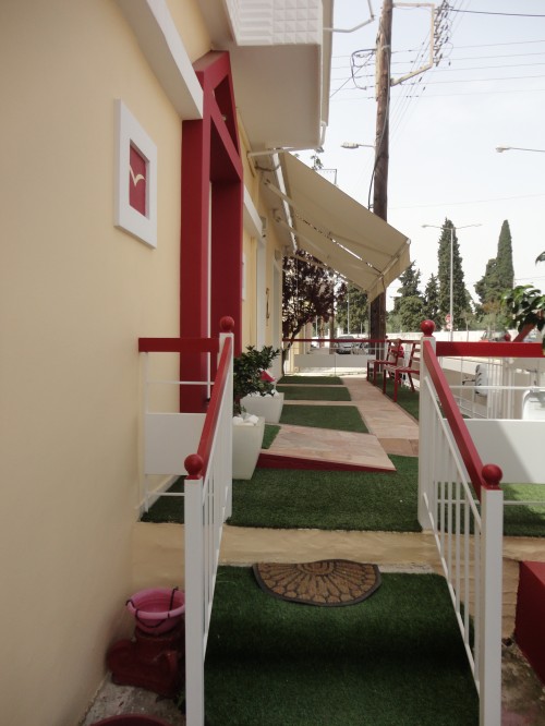 Ευρύχωρη βεράντα για την εξυπηρέτηση αναμονής των μεγαλύτερων τετράποδων φίλων! Ο χώρος αυτός επίσης έχει σχεδιαστεί έτσι ώστε να εξυπηρετεί την ορθοπεδική εξέταση σκύλων, μέρος της οποίας είναι η παρατήρηση κατά την βάδιση. Επίσης τον χώρο αυτό χρησιμοποιούν και τα ζώα που βρίσκονται υπό βραχεία νοσηλεία προκειμένου να περπατούν κατά την διάρκεια της νοσηλείας τους .