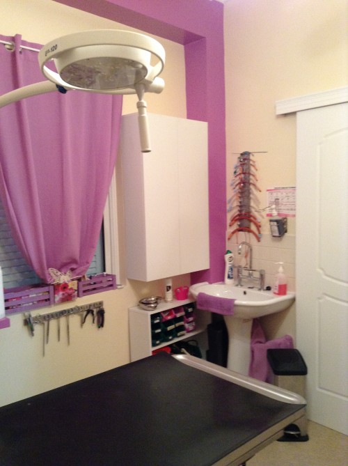 Ο χώρος αυτός χρησιμοποιείται για το μπάνιο των νοσηλευόμενων ζώων. Καλλωπισμοί και κουρέματα δεν πραγματοποιούνται στο ιατρείο μας. Συστήνουμε τοπικές επιχειρήσεις της πόλης μας εξειδικευμένες σε αυτές τις υπηρεσίες.