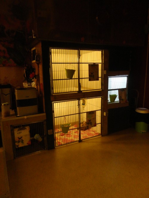 Πίσω από το ιατρείο σε ημίκλειστο χώρο υπάρχουν κλουβιά βραχείας νοσηλείας για σκύλους , γάτες, καθώς και ειδικό terrarium για την βραχεία νοσηλεία ερπετών. Επίσης ειδικός κλωβός οξυγόνου.