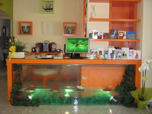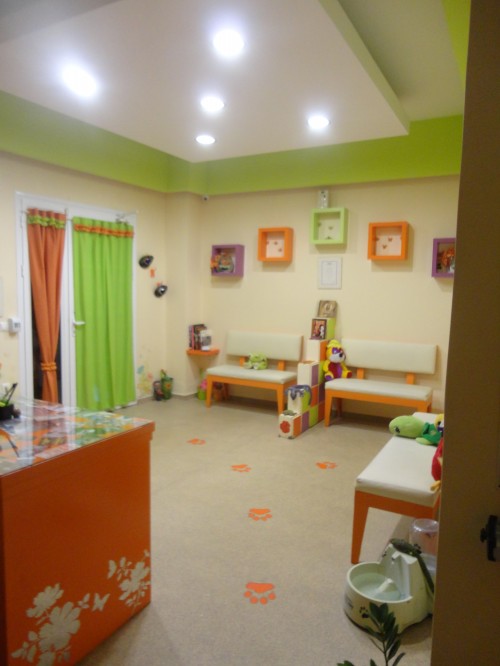 Δύο διθέσιοι καναπέδες και ένας τριθέσιος. Νεροπηγή για τα ζώα που περιμένουν να εξεταστούν.Ζυγαριά για μεγάλα ζώα.