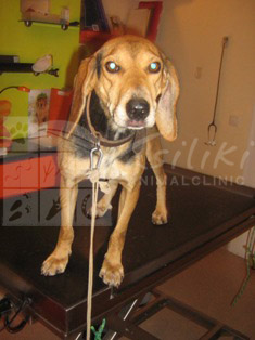 Στις 8 Οκτωβρίου 2010 η Κοπέλα ήρθε στο ιατρείο για έναν προληπτικό έλεγχο αφού ο ιδιοκτήτης της παρατήρησε πως το ζώο εμφάνιζε τελευταία μια εύκολη κόπωση στο κυνήγι. Τίποτε άλλο ανησυχητικό δεν αναφέρθηκε από τον ιδιοκτήτη. Το ζώο έτρωγε και έπινε φυσιολογικά. Είχε μόλις τελειώσει ο οιστρικός του κύκλος ( περίοδος ) και όλα έδειχναν φυσιολογικά, εκτός από το γεγονός πως τελευταία δεν έδειχνε την ίδια αντοχή στο κυνήγι όπως παλιά.