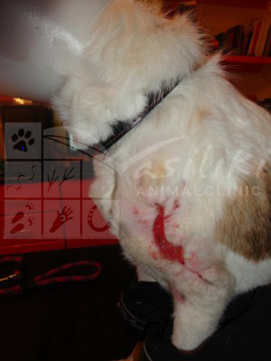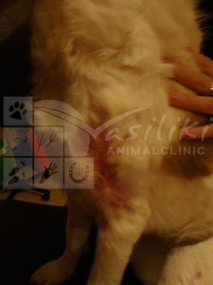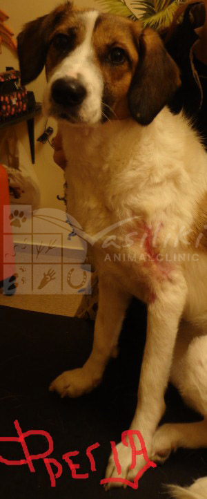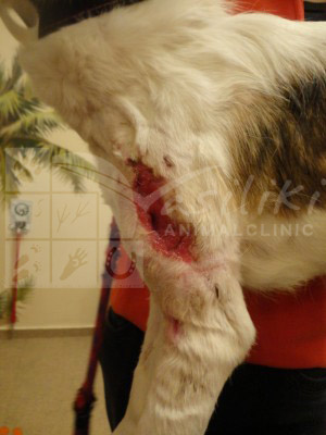 Το ζώο μεταφέρθηκε στο ιατρείο μας από τους ιδιοκτήτες του και ήταν σε τραγική κατάσταση.