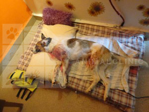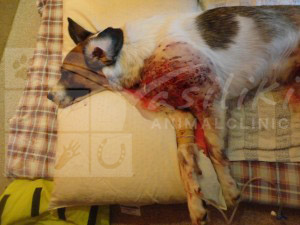 Οι αρχικοί μας φόβοι είχαν να κάνουν τόσο με την πιθανότητα το ζώο να είχε χάσει την αίσθηση και λειτουργικότητα του ποδιού του, όσο και με την πιθανότητα να υποκύψει στα τραύματά του λόγω εσωτερικής αιμορραγίας, αφού ο κυρίως τραυματισμός ήταν γύρω από το θώρακά του.