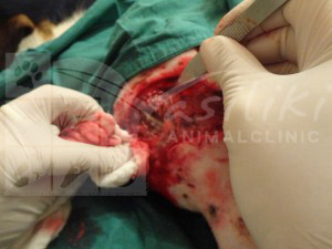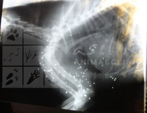 Η πιο σοβαρή πληγή ήταν αυτή στο αριστερό πρόσθιο άκρο του ζώου. Τα σκάγια είχαν φθάσει τόσο βαθιά ώστε μέρος του βραχιόνιου οστού της είχε θρυμματιστεί .