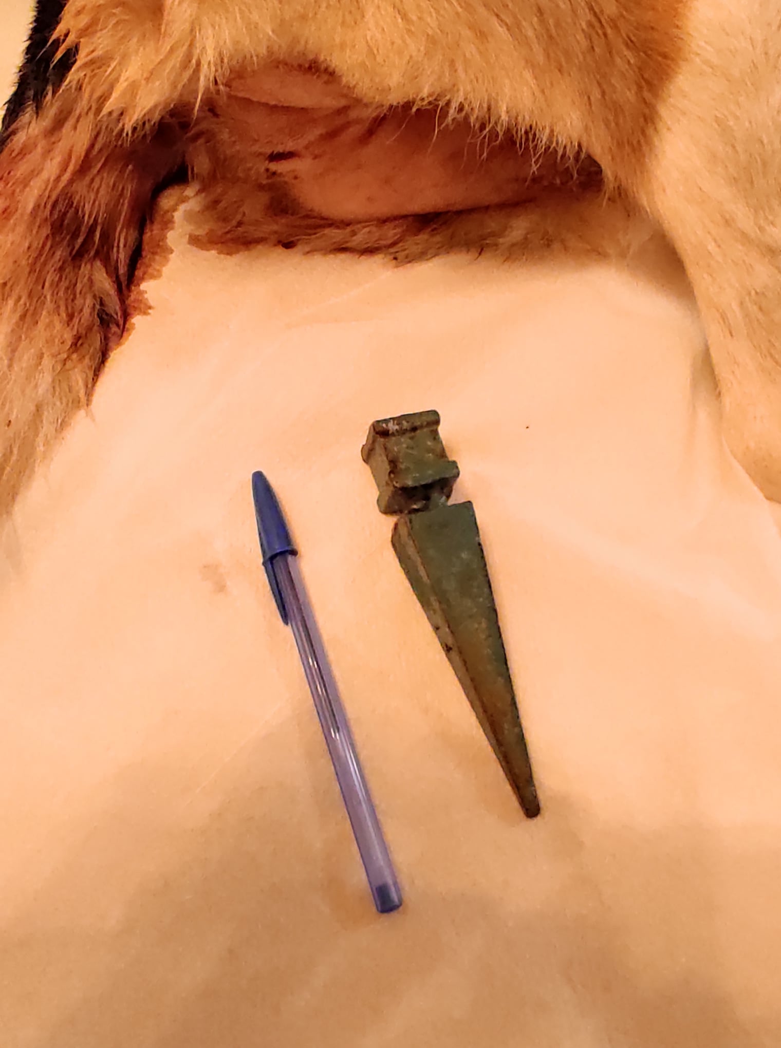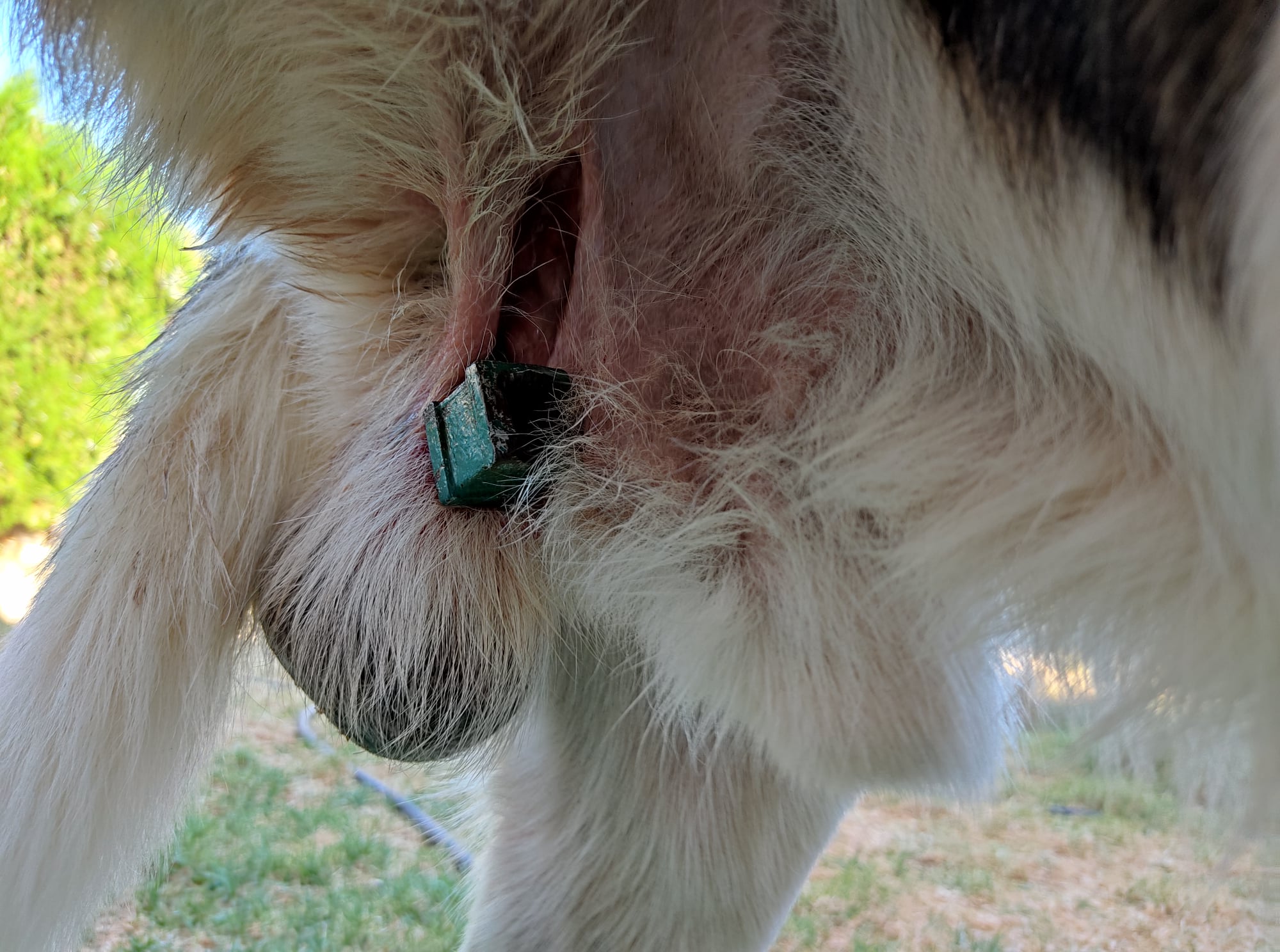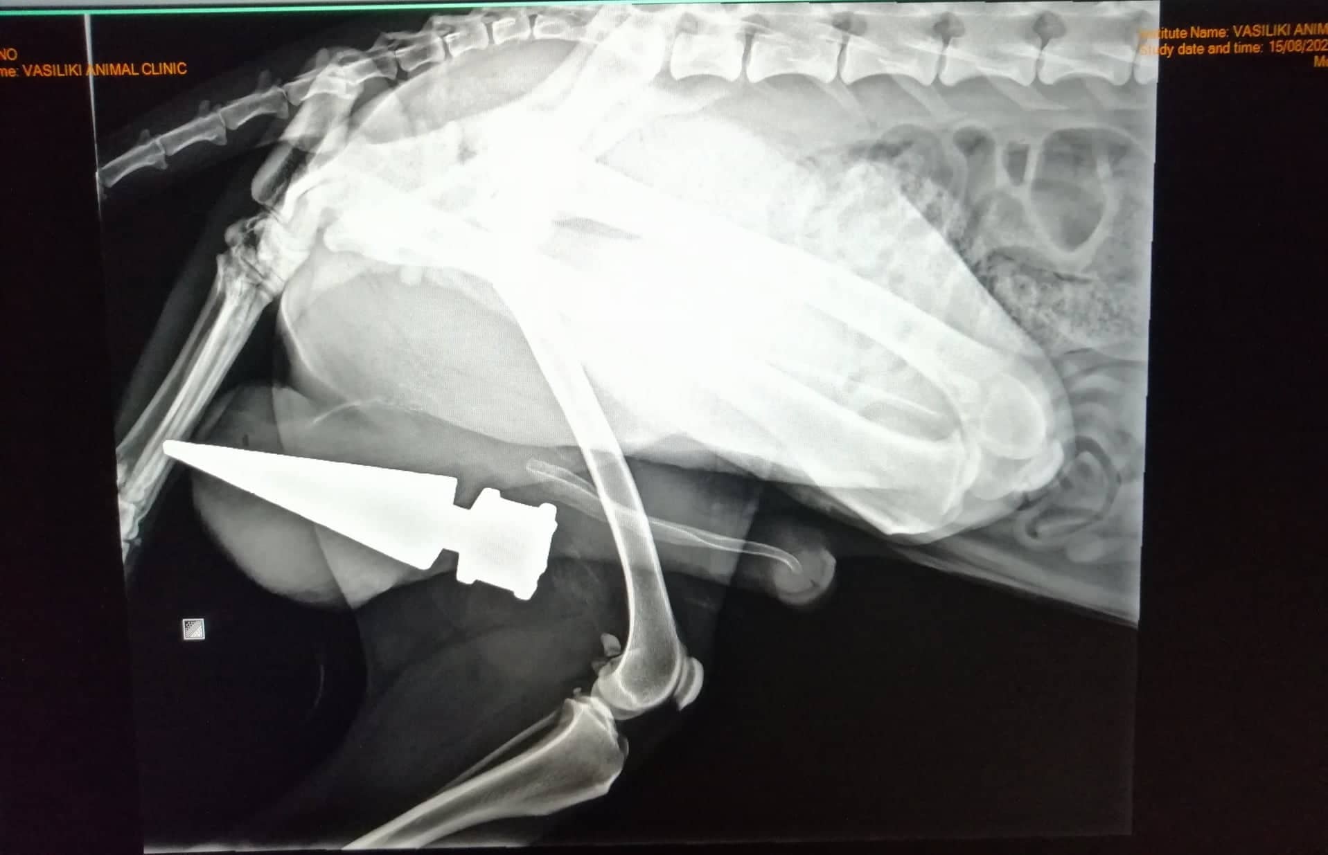 Παρότι, ούτε κλινικά ούτε υπερηχοτομογραφικά είχα εντοπίσει κάποια αιμορραγία ( που ήταν το ελάχιστο αναμενόμενο), ο μεγαλύτερος φόβος μου ήταν η πιθανότητα το σιδερένιο αντικείμενο να είχε καρφωθεί σε κάποιο από τα μεγάλα αγγεία των όρχεων και να λειτουργούσε υπό την έννοια του επιπωματισμού ( να ταμπονάριζε δηλαδή το αγγείο και να μην άφηνε το αίμα να κυλήσει έξω από το σώμα του ζώου). Πολύ απλά, να είχε φράξει το αγγείο και γι'αυτό δεν έβλεπα το ζώο να αιμορραγεί.