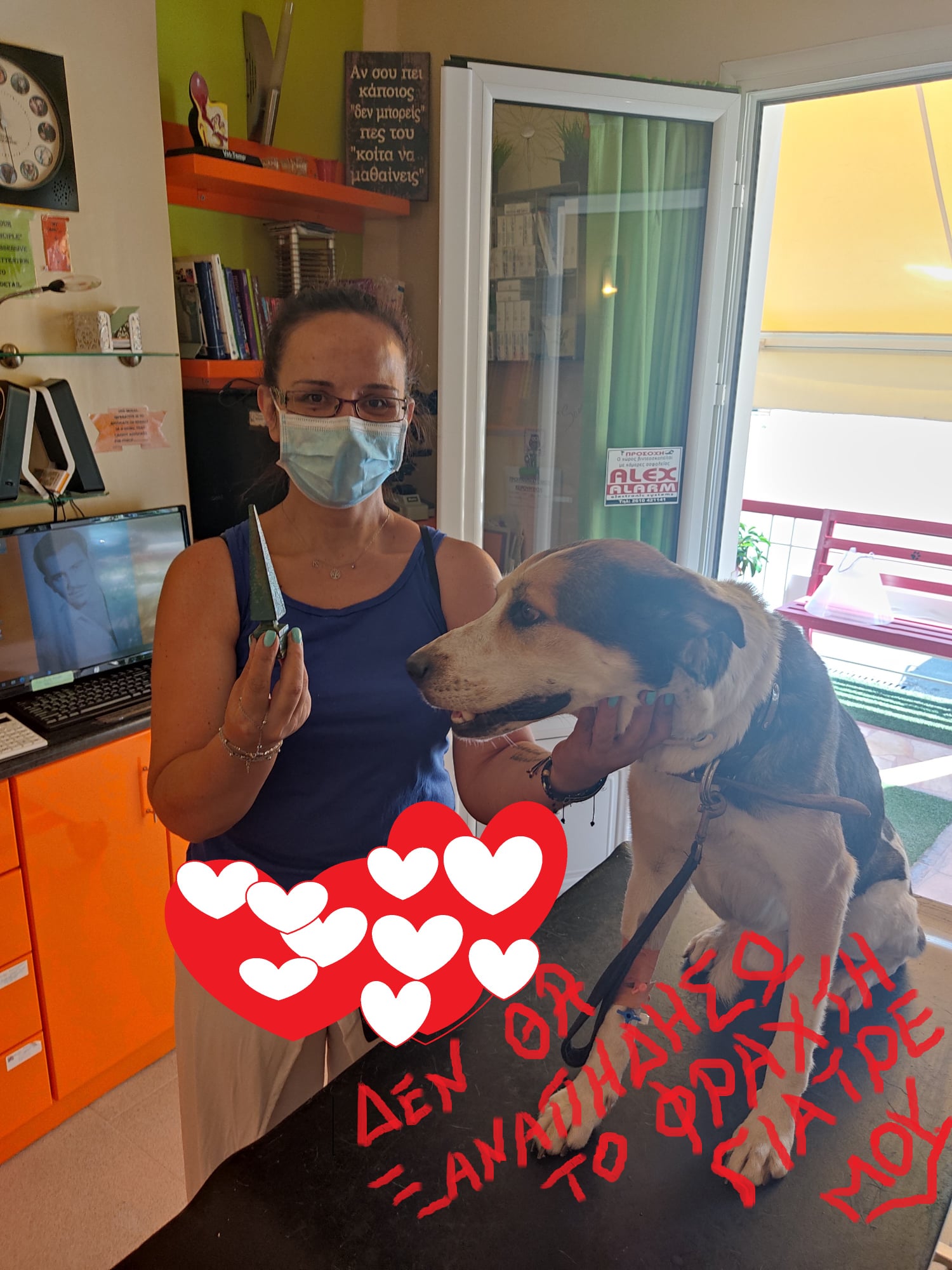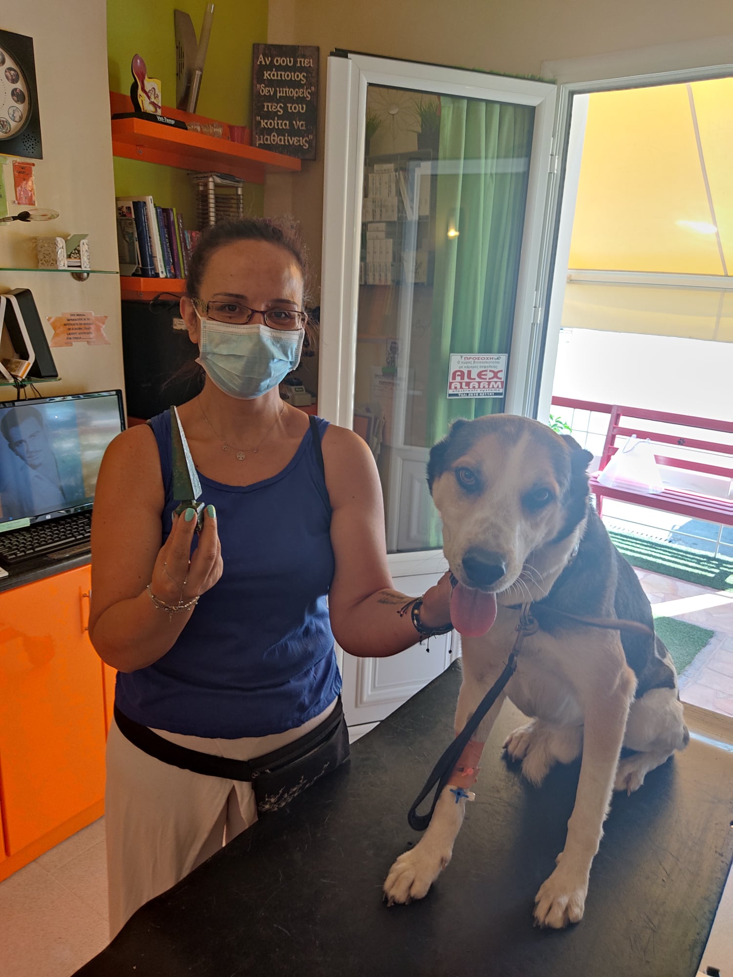 Αφού έγινε όλη η προετοιμασία με υπέρηχο, ακτινογραφία, ορούς και όλα τα σχετικά., κοιμίσαμε τον Μπρούνο με βοηθό? τον ίδιο τον μπαμπά του! ( το συνηθίζουμε τώρα τελευταία με τους συγγενείς των ασθενών μας ΧΑΧΑ).